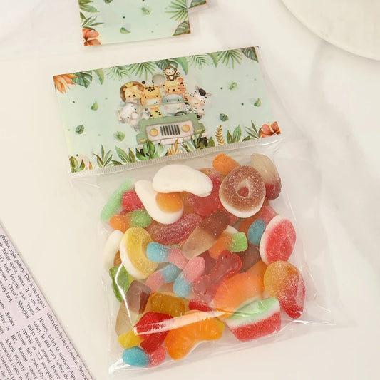 أكياس حلوى بلاستيكية ذاتية اللصق على شكل حيوانات الغابة، 30/50 قطعة