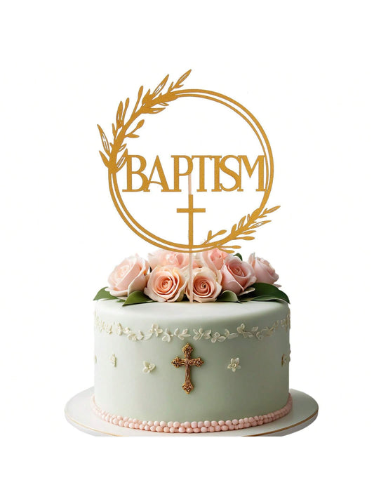 1Pc Mi Bautizo Gold Cake Topper - Divine Blessings Elegant Cake Decor for Celebrations, Baptisms & Milestones Decoration, Back to School Valentine Day