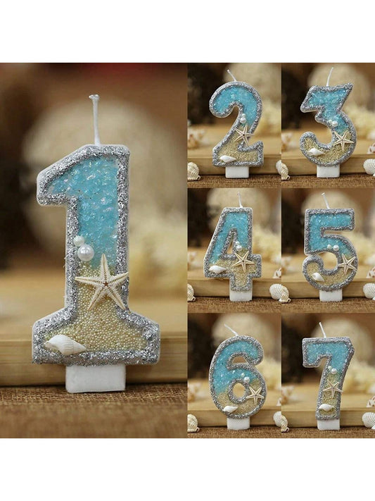 Blue Glitter Candles 1PC 0-9