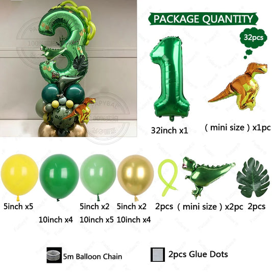 Jungle Dinosaur Green Brown Balloon Arch Set of 115
