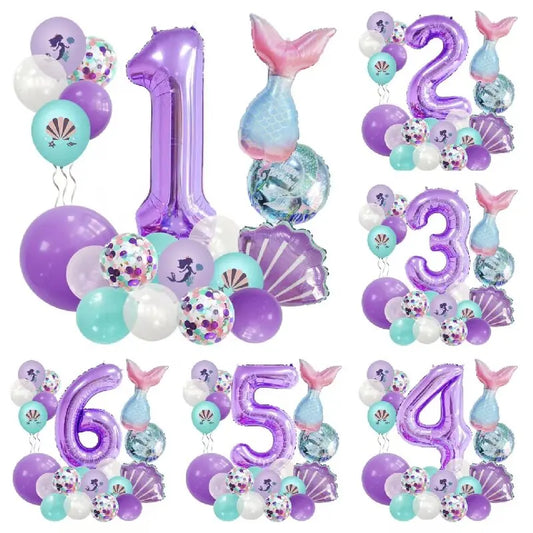 Mermaid Number Balloon Set – 0-9, Sequin & Foil