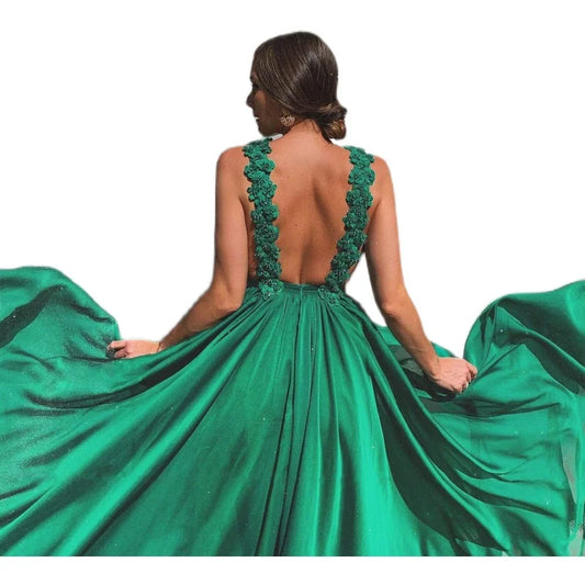 Silvia Deep V Neck Silver Sequined Backless Sexy Dresswer