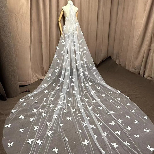 Luxury wedding veil heavy glitter beaded ivory single Tier 3M