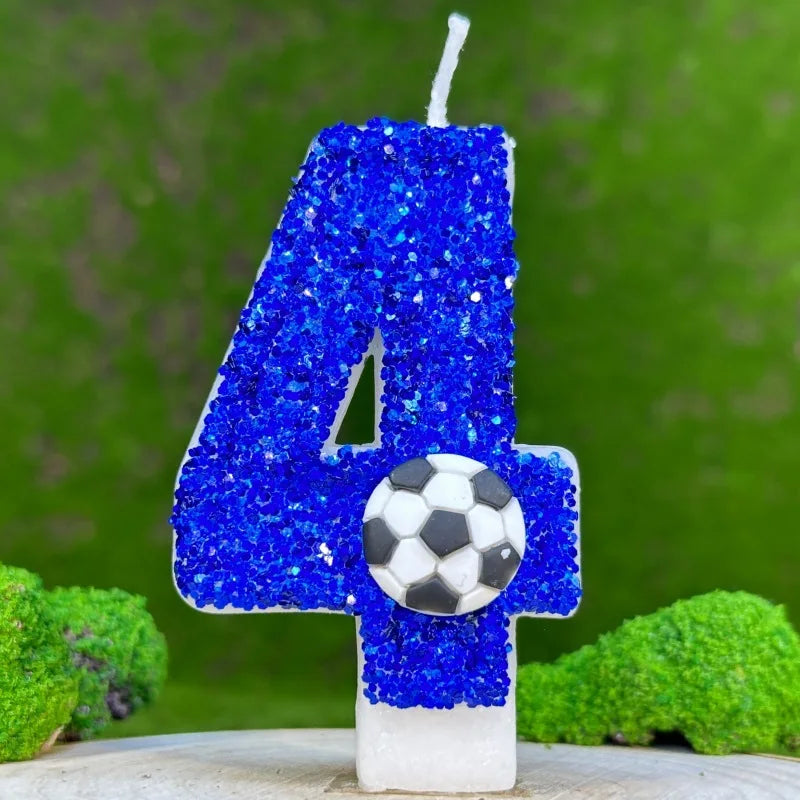 Name: 0–9 Blue Football Birthday Candles with Tray