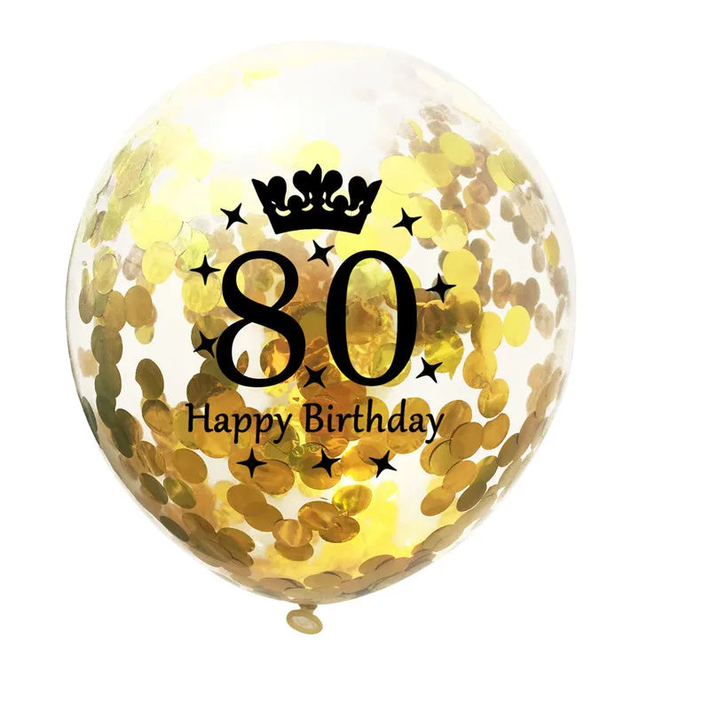 “Celebrate milestones with these 12-inch Crown Number Confetti Balloons. Available in numbers 16–80, they are perfect for birthdays, anniversaries, and special party decorations.”