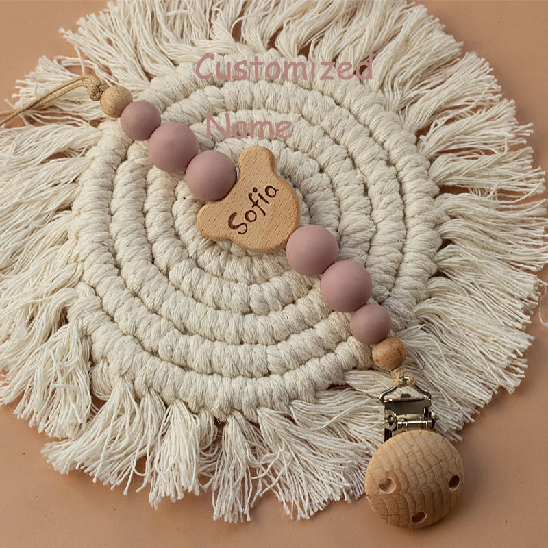 Custom name pacifier bead Silicone and Wooden dummy