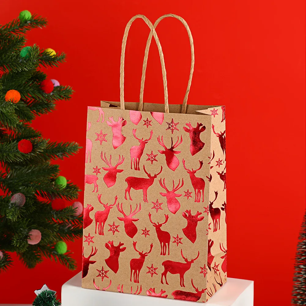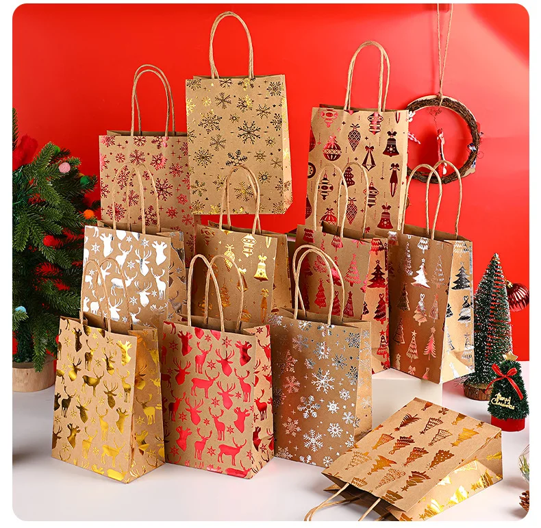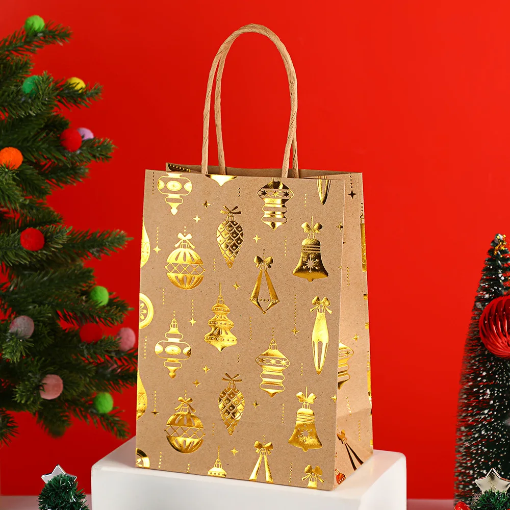 Gold Foil Christmas Gift Bags – 1/10pcs Cowhide Paper