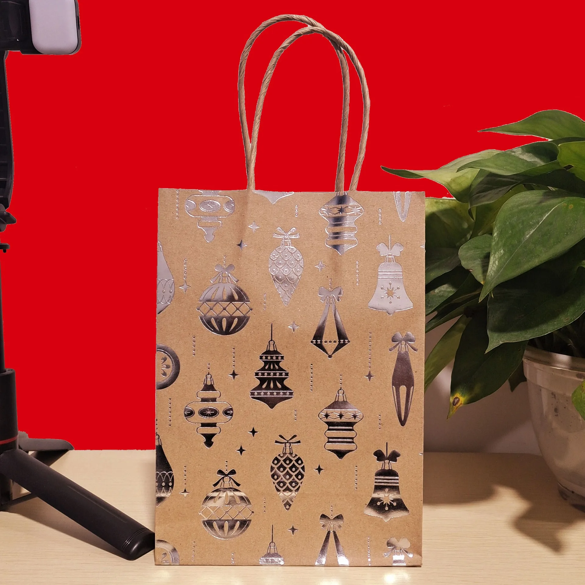 Name: Christmas Gold Foil Handheld Kraft Paper Bag