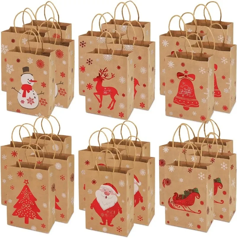 Add a sparkling holiday touch to your gifts with these stunning Christmas kraft paper bags from StoreBag! Each bag features festive metallic prints—reindeer, Christmas trees, snowflakes, bells, and more—in foil colors like gold, silver, and red. Perfect for candy, cookies, bakery treats, small gifts, and party favors.