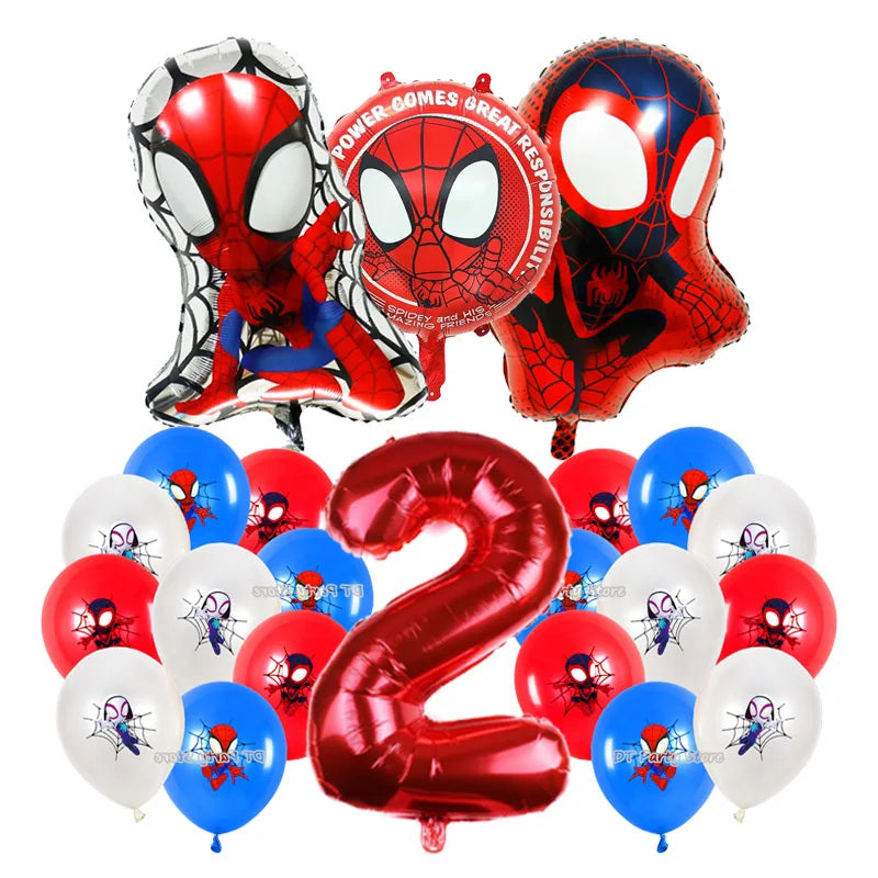 Balloon Set 1~9 (1pcs 32inches Number Balloon + 3pcs Spiderman Balloon + 18pcs Latex Mix Balloon) - total 22pcs