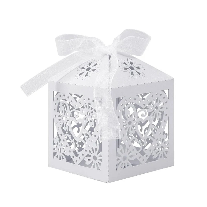 White Love heart candy Gift Box with ribbon 10/50pcs